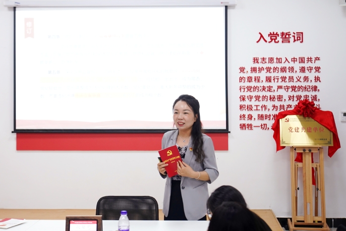 仪式后,张馨艺书记为与会人员上了一堂生动的党课——党纪学习教育。她详细解读了党的纪律建设的重要意义、《条例》修订的历史沿革及基本框架及特色亮点,并逐条领学了《条例》总则部分的内容。同时强调,要坚决做到“两个维护”;坚持尊崇和维护党章;坚持落实纪法贯通;坚持严管和厚爱结合、激励和约束并重。党员干部要时刻温故知新、学新知新,将新旧《条例》进行对照学习,明确条例的变更内容;以坚强的党性、良好的纪律严格要求自己,牢记职责使命。