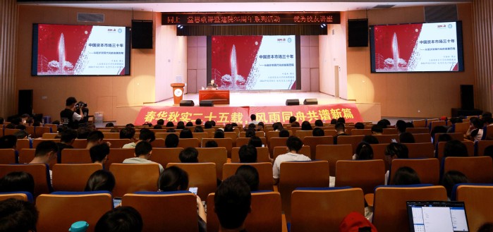 讲座上,叶春和作题为“中国资本市场三十年——从起步到现代化的发展历程”主题讲座。他用深入浅出的语言,围绕中国资本市场发展概况等十几个方面,为我们深刻剖析了中国资本市场的发展历程及启示。叶春和指出,我国资本市场在国家经济发展起中扮演着重要的角色,它经过三十多年的发展,在改革开放中成长,从无到有,从小到大,已经逐步成为与我国经济体量相匹配、具有全球影响力和竞争力的重要市场。叶春和鼓励同学们,诸位作为未来经济社会的参与者,应积极学习相关知识,主动了解社会变化和未来趋势,努力把握发展机遇,为中华民族伟大复兴贡献自己的聪明才智。