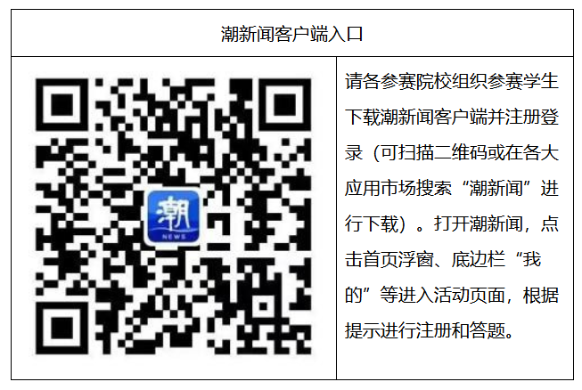初赛。2025年11月24日至28日,在潮新闻客户端进行初赛线上答题。各分院组织学生积极参赛,杜绝作弊行为。如有学生个人作弊的,取消个人成绩;集体作弊的,取消学校参赛资格。