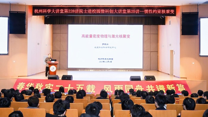 本次大讲堂特邀中国科学院院士、著名物理学家罗民兴,带来题为《高能量密度物理与激光核聚变》的专题报告,为现场听众呈现一堂深入浅出的前沿能源科技课。杭州市科学技术协会党组成员、副主席孟祥胜、我院院长管力明、浙大青山湖能源研究基地院长方梦祥、杭州市化工研究院副院长田清泉以及杭州市科技工作者服务中心、临安区科学技术协会、学院二级单位负责人及师生代表近500人参与了本次活动。孟祥胜为罗民兴院士颁发了大讲堂荣誉证书。