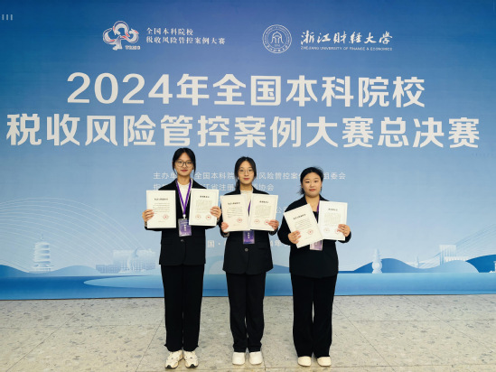 127日,2024年全国税收风险管控案例大赛总决赛浙江财经大学举办。浙江省共有包括浙江大学、浙江财经大学、我校等在内的7支队伍进入全国总决赛。经过激烈角逐,我院学子首次在全国总决赛取得国二的优异成绩,获奖同学还拿到由浙江省注册会计师协会颁发的免试入职通知书和就业推荐信。