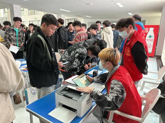 在招聘会现场,党员志愿者们穿上醒目的志愿者马甲,积极参与招聘会的各项准备工作,如粘贴参会企业展牌、搬运物品、引导进场、分发物资材料等,积极为招聘会的参会企业和同学提供及时有效的帮助。现场设置党员服务站,党员志愿者为前来参加招聘会的毕业生们提供简历优化和打印服务,还提供饮用水、基本的就业信息等,当日累计打印简历200余份。