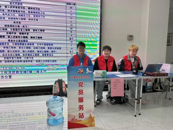为深入学习贯彻党的二十大精神,积极落实学院就业工作统一部署和要求,充分发挥学生党员的先锋模范作用,进一步促进2024届毕业生更加充分、更高质量就业。3月27日下午,计算机学院党总支以人才招聘会为契机,开展“党建促就业,护航招聘会”主题党日活动。