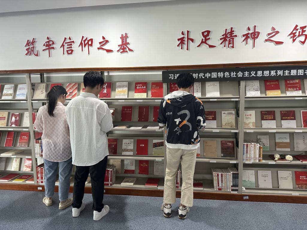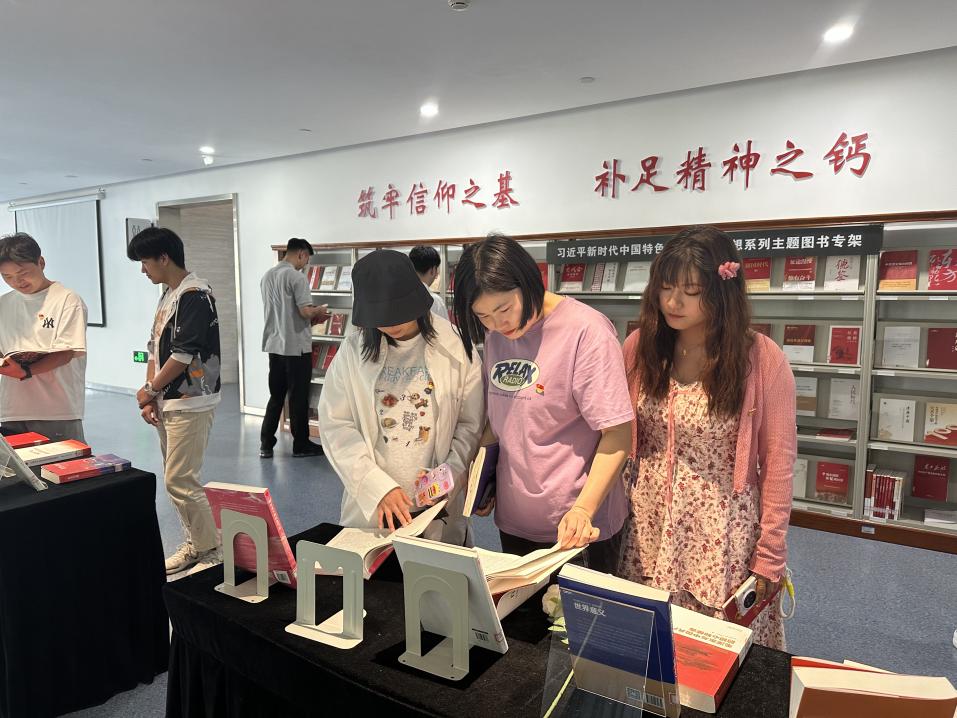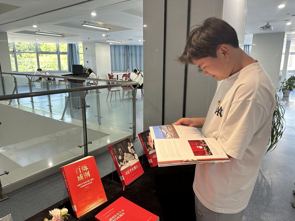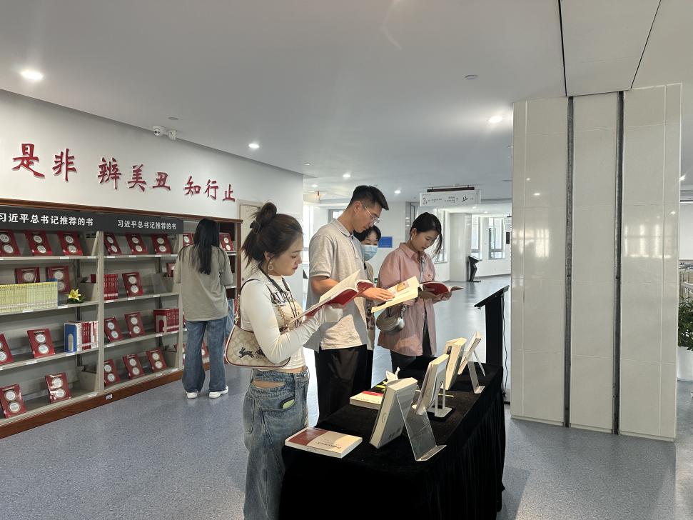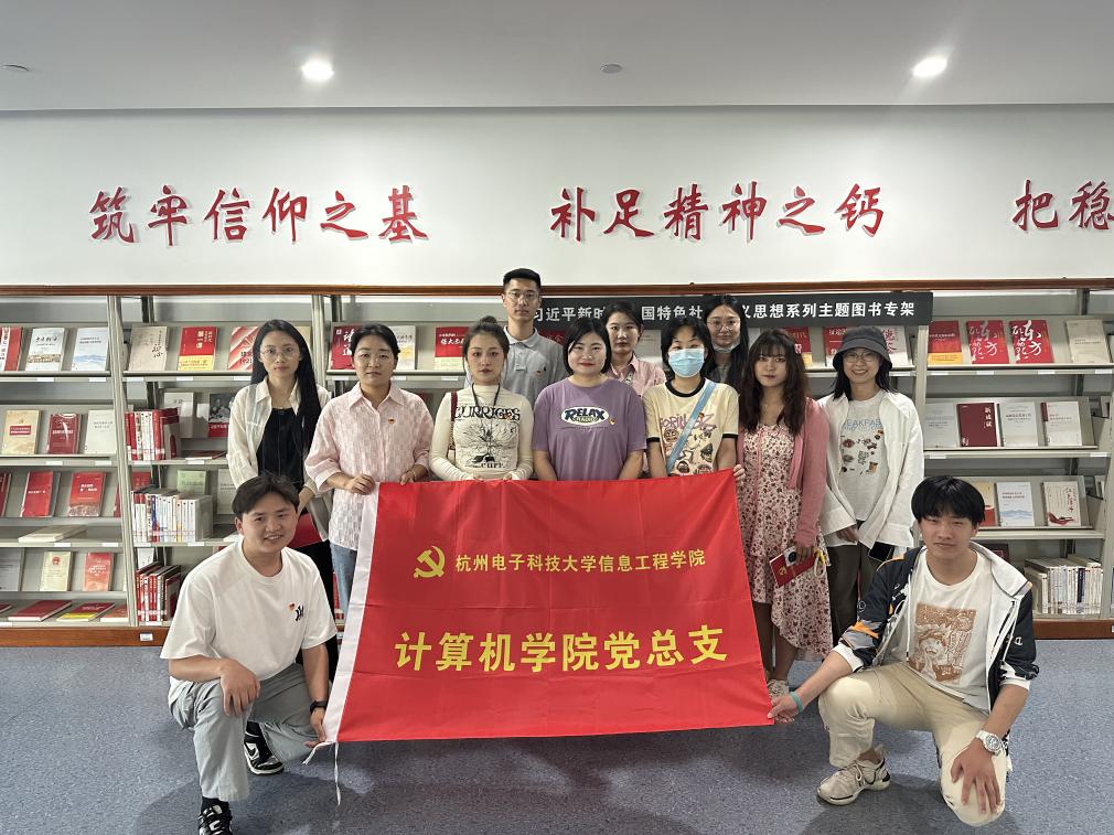计算机学院党总支副书记章玉婷带领党员们走进杭电信工图书馆,一起参观学习“习近平新时代中国特色社会主义思想系列主题图书”,阅读书籍,汲取力量,坚定信仰。章玉婷要求全体党员要树立终身学习的理念,积极开展多读书、读好书的浓厚学习氛围,充分发挥党员示范带头作用,不断提升道德情操和文化修养,修身养性,增长才干。
