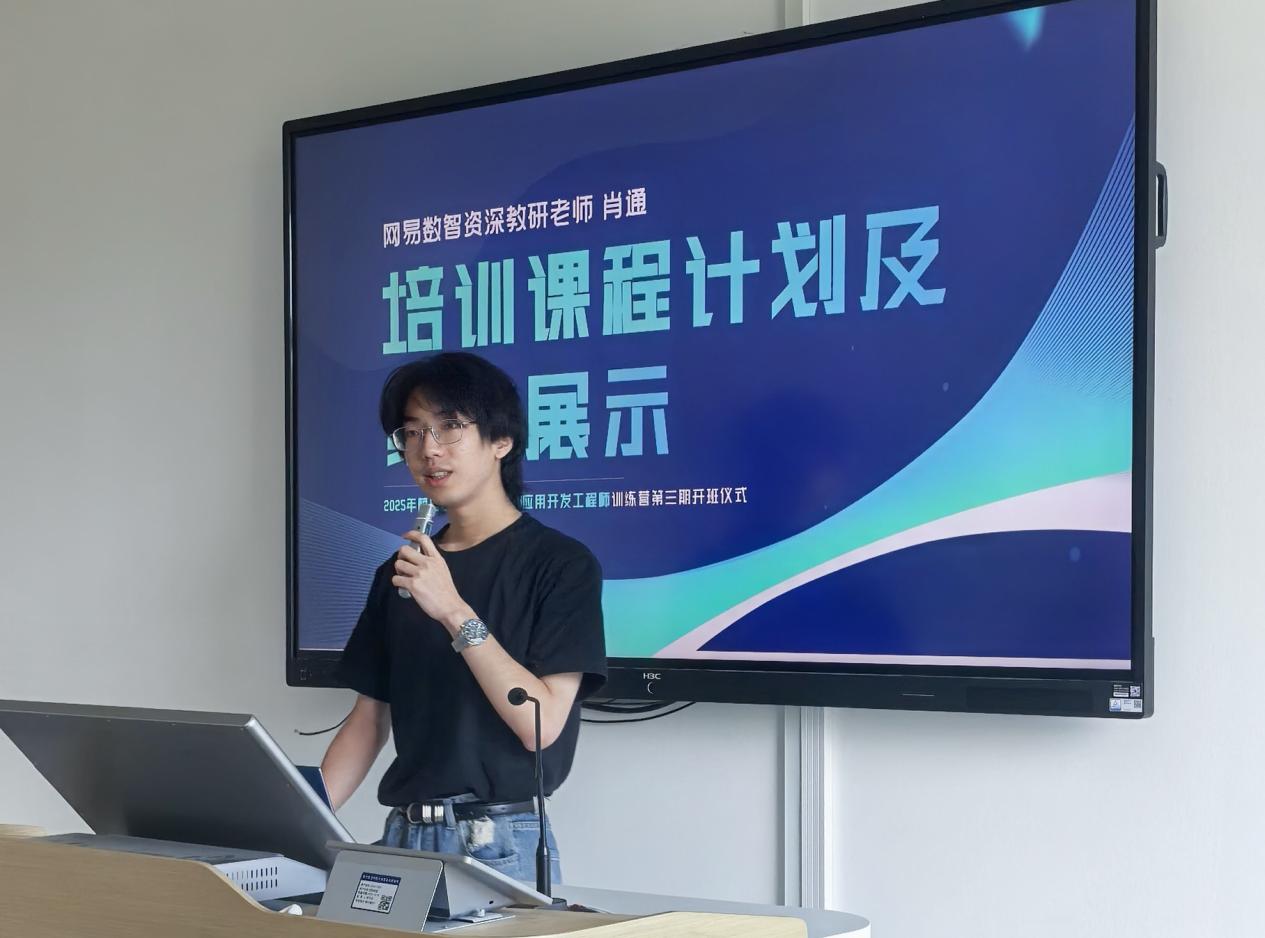 随后,肖通对本期训练营的课程设置及教学安排进行了详细介绍。他表示,本期训练营将结合网易数智的最新技术成果与行业实践经验,将为学员们提供系统、全面的课程。希望各位同学能够不断克服困难,顺利完成全部课程。