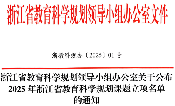 近日,浙江省教育科学规划领导小组办公室发布《浙江省教育科学规划领导小组办公室关于公布浙江省教育科学规划2025年度各类课题的通知》(浙教科规办〔2025〕01号),学院有1项重点课题和2项一般规划课题获批立项。获批立项名单如下: