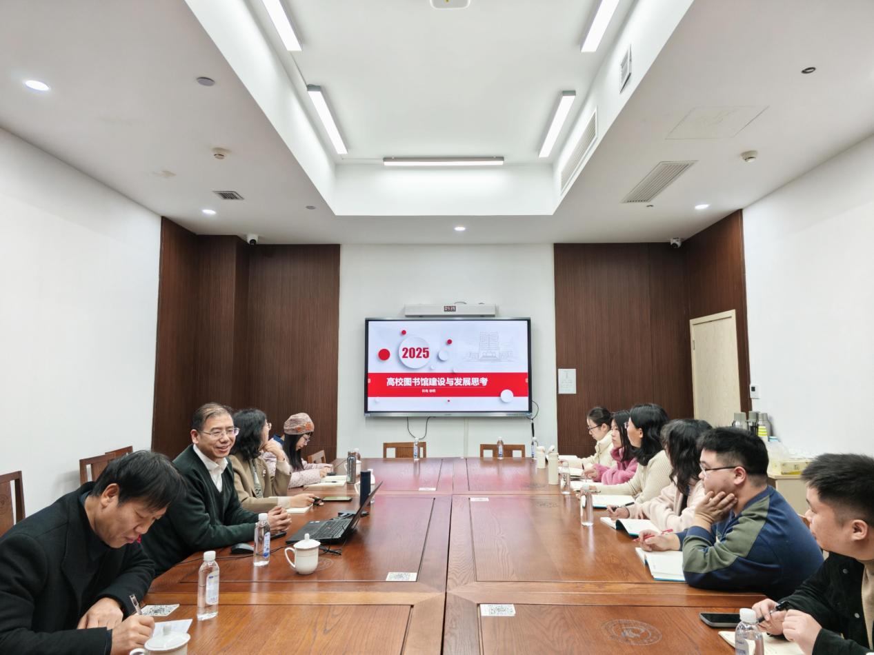 随后,徐明以“高校图书馆建设与发展思考”为主题,为与会人员带来了一场深入浅出、内容丰富的讲座。讲座中,徐明首先回顾了图书馆的发展史,从古代的藏书楼到现代的数字化图书馆,生动展现了图书馆在知识传承与文化交流中的重要作用。接着,他从思想、技术、现实层面剖析了当代图书馆所面临的挑战。